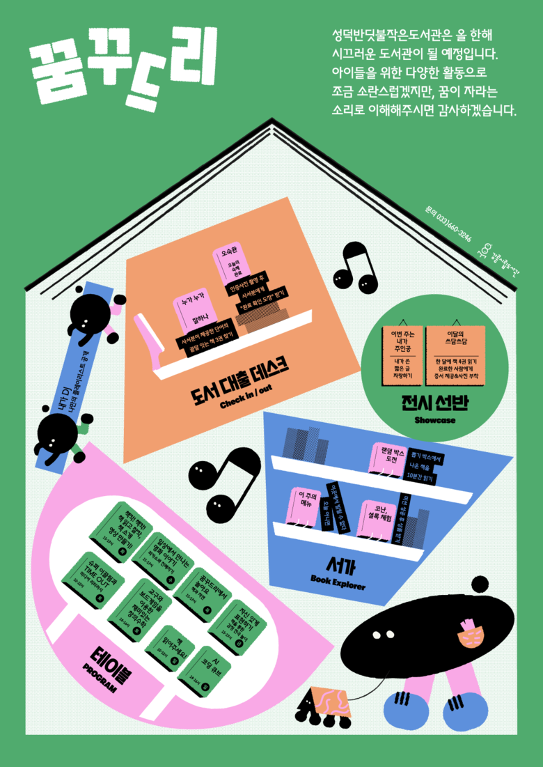 도서관 서가를 탐구하는 ▲코난, 셜록 체험 ▲이 주의 메뉴 ▲랜덤 박스 도전, 꿈꾸드리 지기와 함께하는 ▲누가 누가 잘하나 ▲오숙완(오늘의 숙제완료) ▲오늘은 내가 DJ 등 상설 프로그램과 자신이 쓴 글을 자랑할 수 있는 ▲이번 주는 내가 주인공, 한 달에 책 4권을 읽은 사람을 기념하는 ▲이달의 쓰담쓰담 등 전시 프로그램도 함께 진행될 예정이다.