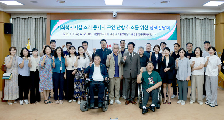 [대전 세계타임즈=이채봉 기자] 대전시의회 복지환경위원회는 3일 시의회 소통실에서 이효성 의원(국민의힘, 대덕구1) 주재로 「사회복지시설 조리 종사자 구인 난항 해소 정책간담회」를 개최했다.
