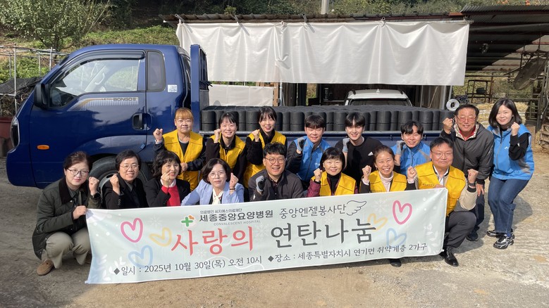 특히 세종중앙요양병원 직원들은 연기면 복지사각지대 2가구를 직접 방문해 사랑의 연탄을 배달하며 나눔의 온기를 더했다.