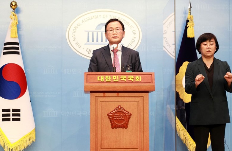 ▲27일 오후 2시 반 국회 소통관에서 국민의힘 김경석 영등포구 제3선거구 前예비후보가 성명서 발표를 하고있다 |