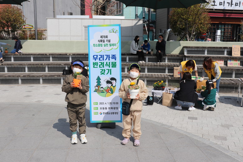 재활용 아이스크림 스푼 등을 활용한 ‘우리가족 반려식물에게 이름을 지어주세요!’ 화분 이름표 짓기와 ‘탄소중립 실천 인증사진 및 메시지 남기기’ SNS 챌린지도 진행했다.
