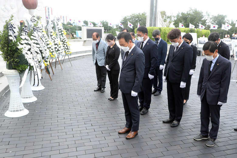 이날 참배에는 황영호 의장을 비롯한 노금식 행정문화위원장, 이동우 건설환경소방위원장, 김현문 교육위원장과 안지윤‧최정훈‧김성대‧이옥규‧이정범‧박재주‧이욱희 의원, 사무처 간부 직원이 참석했다.