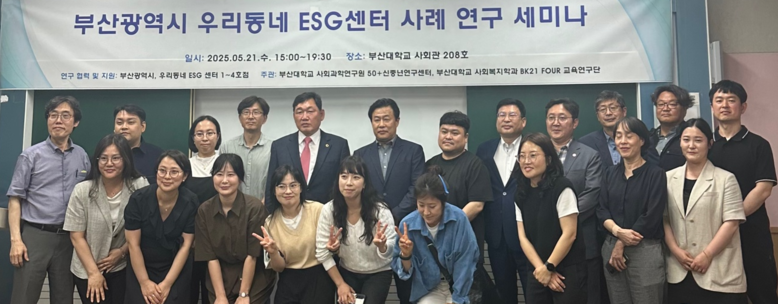 [부산 세계타임즈=이용우 기자] 부산대학교 사회과학연구원 50+신중년연구센터와 사회복지학과 BK21 FOUR 교육연구단이 주관하는 ‘우리동네 ESG센터 사례 연구 세미나’가 5월 21일 오후 3시, 부산대학교 사회관에서 개최되었다.