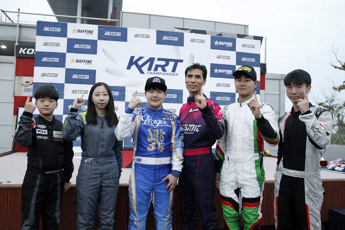 [사진설명]2018 카트 챔피언십 각 클래스에서 시즌 챔피언에 오른 선수들이 기념촬영하고 있다.