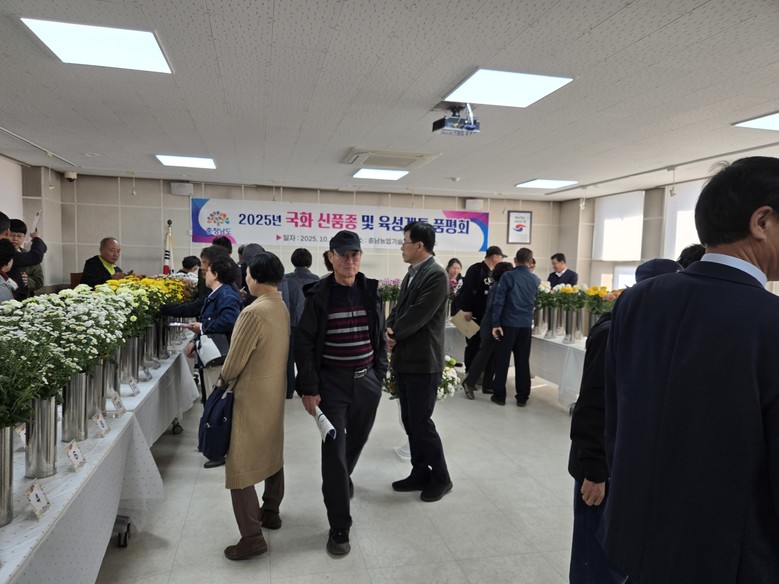 이번 품평회는 육종가와 국화 육묘업체, 수출농가, 온라인 유통 농가 등 국화 재배 전문가 60여 명이 참석한 가운데, 우수 계통을 선발하기 위해 화색, 화형 등을 참여자 직접 참여하는 선호도 조사 방식으로 진행됐다.