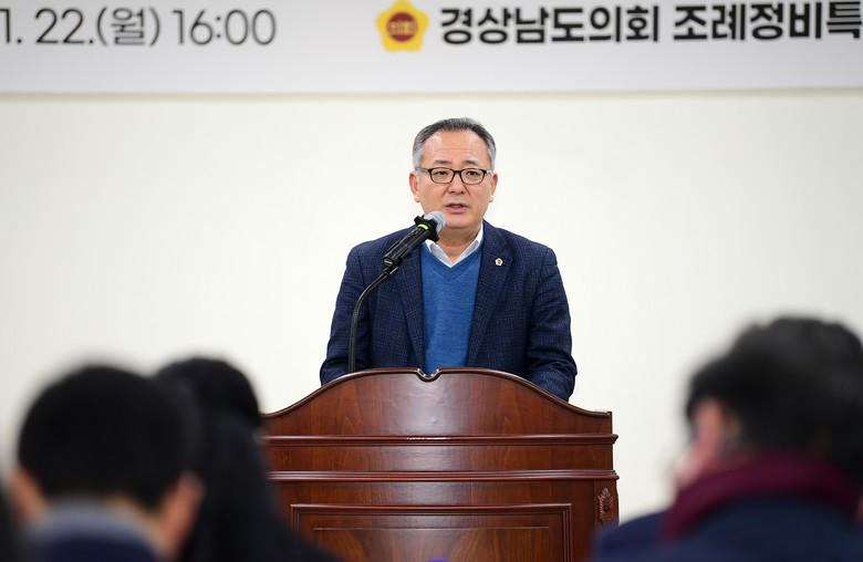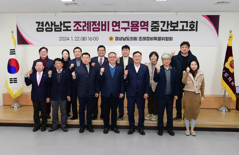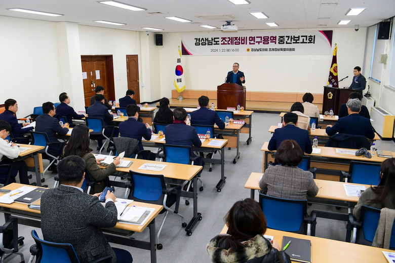 [경남 세계타임즈=최성룡 기자] 경상남도의회 조례정비특별위원회(위원장 정규헌, 이하 특위)는 22일 대회의실에서 ‘경상남도 조례정비 연구용역’ 중간보고회를 개최하였다.