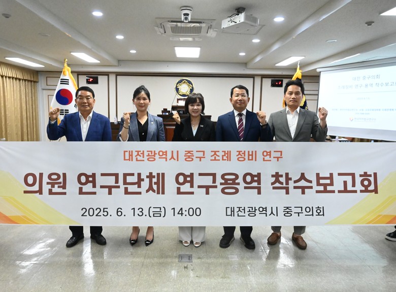 [중구 세계타임즈=이채봉 기자] 대전 중구의회(의장 오은규) 의원 연구단체인 ‘대전광역시 중구 조례 정비 연구회(대표의원 김석환)’는 13일 중구의회 본회의장에서 ‘대전광역시 중구 조례 정비 연구 착수보고회’를 가졌다고 밝혔다.