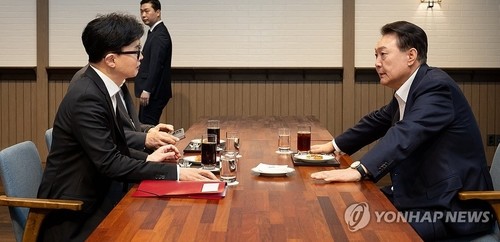 [세계타임즈 = 이채봉 기자] 윤석열 대통령은 21일 오후 용산 대통령실에서 국민의힘 한동훈 대표를 만나 정국 현안을 논의했다.윤 대통령과 한 대표의 면담은 오후 4시54분께 대통령실 청사 앞 야외정원인 파인그라스에서 시작돼 오후 6시 15분까지 81분간 진행됐다고 대통령실은 전했다.윤 대통령과 한 대표는 차담 형식의 면담에서 의제에 제한을 두지 않고 폭넓게 현안에 대한 의견을 나눈 것으로 전해졌다.윤 대통령과 한 대표는 면담에 앞서 정진석 대통령 비서실장, 홍철호 대통령실 정무수석 등과 파인그라스 잔디밭을 10여분간 함께 걸으며 담소를 나누기도 했다.이어진 면담에는 정진석 비서실장이 배석했다. 한 대표는 당초 독대를 건의했으나 이번 면담에선 독대가 성사되지 않았다.윤 대통령과 한 대표는 김건희 여사를 둘러싸고 제기된 여러 의혹과 해법을 주로 논의한 것으로 보인다.한 대표가 김 여사의 대외 활동 중단 및 의혹 규명을 위한 절차 협조, 그리고 김 여사와 가까운 것으로 지목된 대통령실 참모들의 인적 쇄신 등 3대 건의 사항을 전달하겠다고 예고한 만큼, 여권 안팎에서는 윤 대통령이 어떤 반응을 보일지에 주목하고 있다.윤 대통령은 한 대표의 건의에 즉답을 내놓기보다는 한 대표의 정견과 그가 전달하는 민심을 경청하는 데 집중했을 것이란 관측이 많다. 윤-한 갈등이란 말이 나올 만큼 당정 간 불화가 지적돼온 만큼, 당정 간 신뢰 회복과 관계 강화에 대한 논의도 오갔을 듯하다.의료 개혁으로 촉발된 의정 갈등 해결 방안과 정기국회 대응 방안 등도 논의된 것으로 보인다.면담 내용은 한 대표가 국회에서 브리핑을 통해 밝힐 것으로 전해졌다.윤 대통령과 한 대표의 면담은 지난 7월 30일 정 비서실장이 배석한 채로 약 1시간 30분간 비공개로 만난 이후 약 두 달 반 만이다.전당대회 직후인 7월 24일과 9월 24일에 윤 대통령과 당 지도부 만찬이 있었지만, 단체 회동이라 한 대표가 윤 대통령을 독대해 현안을 논의할 시간은 없었다.