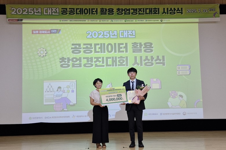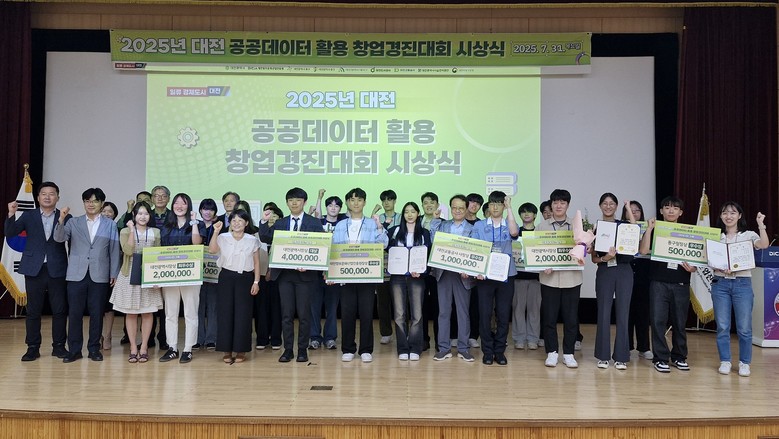 [대전 세계타임즈=이채봉 기자] 대전시는 31일 대전정보문화산업진흥원에서 ‘2025년 대전 공공데이터 활용 창업 경진대회’ 시상식을 열고, 창의적이고 실현 가능성 높은 아이디어를 선보인 12개 팀을 시상했다고 밝혔다.