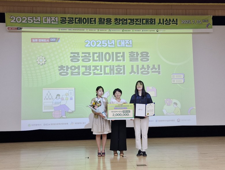 대상과 최우수상을 수상한 두 팀은 오는 9월, 행정안전부 주관 ‘제13회 범정부 공공데이터 활용 창업 경진대회’ 본선에 대전시 대표로 참가한다.