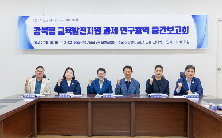이날 보고회에서는 연구용역 수행기관인 나라살림연구소 책임연구원이 연구의 추진 경과와 주요 분석 결과를 발표했다. 특히 강북구의 교육환경과 서울시 자치구별 교육정책 비교, 학부모 대상 설문조사 결과 등이 공유됐으며, 참석 의원들은 이를 바탕으로 강북구 교육의 현황과 향후 발전 방향에 대해 폭넓게 의견을 나눴다.