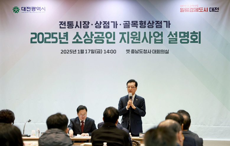 [대전 세계타임즈=이채봉 기자] 대전시의회 조원휘 의장은 17일 옛 충남도청사에서 개최된 ‘2025년 소상공인 지원사업 설명회’에 참석해 고물가로 인한 소비위축 등 소상공인들의 어려움을 청취하고 대전시의 지원정책을 공유하는 시간을 가졌다.