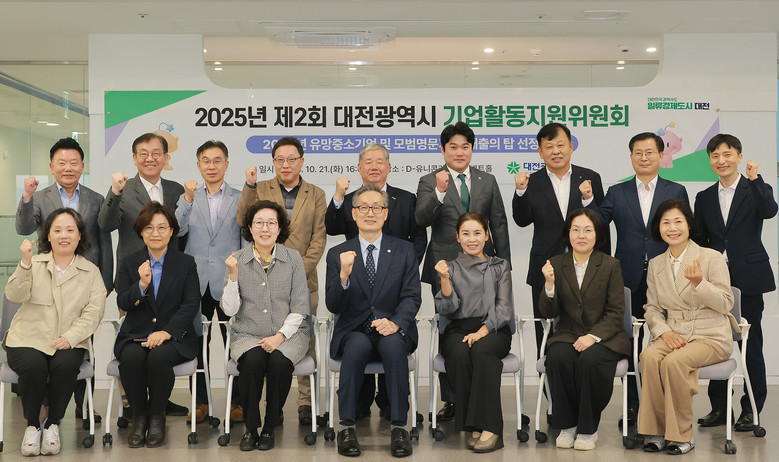 [대전 세계타임즈=이채봉 기자] 대전시는 21일 오후, 유성구 도룡동 D-유니콘라운지에서 ‘대전광역시 기업활동지원위원회’를 열고, 유득원 행정부시장 주재로 2025년 유망중소기업, 모범명문기업, 매출의 탑 기업 선정에 대해 심의했다.