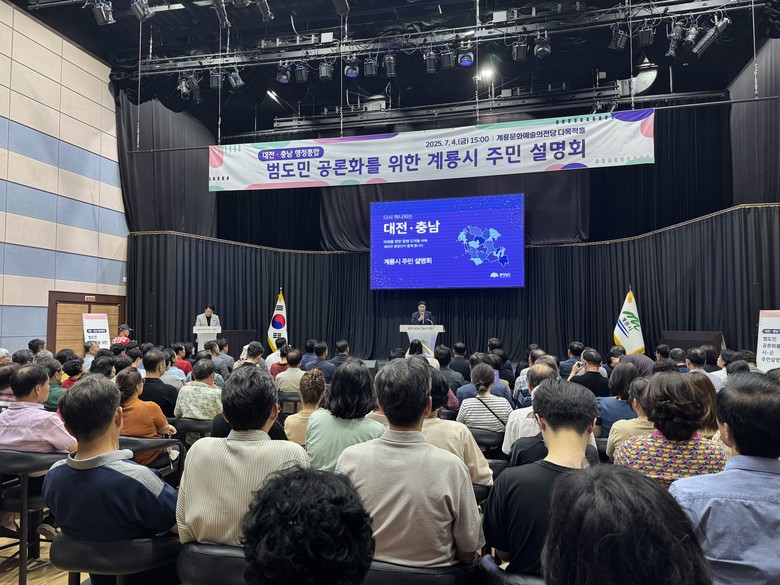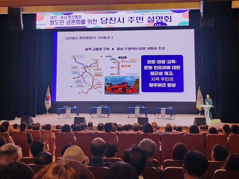 대전·충남 행정통합 민관협의체(위원장 이창기·정재근)는 4일 당진시청 대강당, 계룡시 문화예술의전당 다목적홀을 잇달아 방문해 주민 설명회를 개최했다.