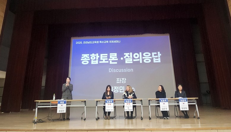 [전남 세계타임즈=우덕현 기자] 전라남도교육청(교육감 김대중)은 21일 순천만생태문화교육원에서 전남특수교육학회 주관으로 ‘통합교육을 위한 특수교육 국제세미나’를 열고 AI 기반 개별 맞춤형 지원과 통합교육 실천 현장 적용 방안을 모색했다.