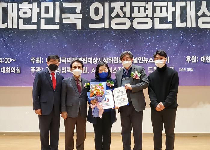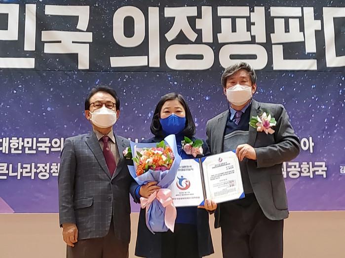 [울산=세계타임즈 이호근 기자] 울산광역시의회 이미영 의원(행정자치위원)이 27일 국회 의원회관 대회의실에서 열린 “2021년 대한민국의정평판대상” 시상식에서 “지방자치의원 의정대상”을 수상했다.