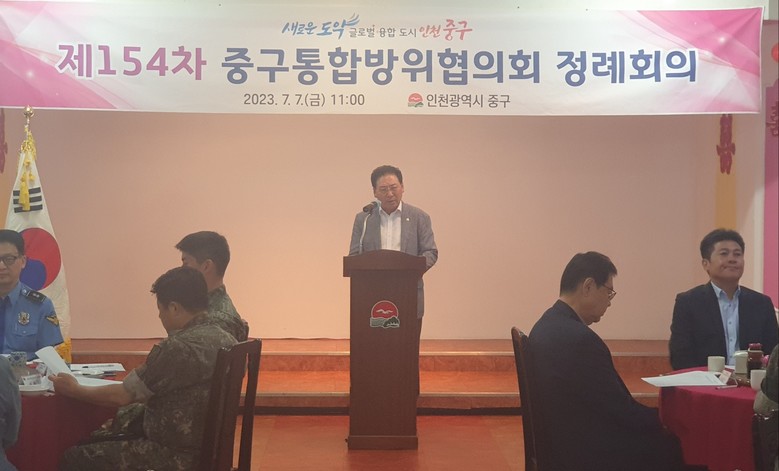 [중구 세계타임즈=심하린 기자] 인천 중구의회는 7일, 지역단위 공동방위태세 확립을 위해 열린 제154차 중구통합방위협의회 정기회의에 참석했다고 밝혔다.