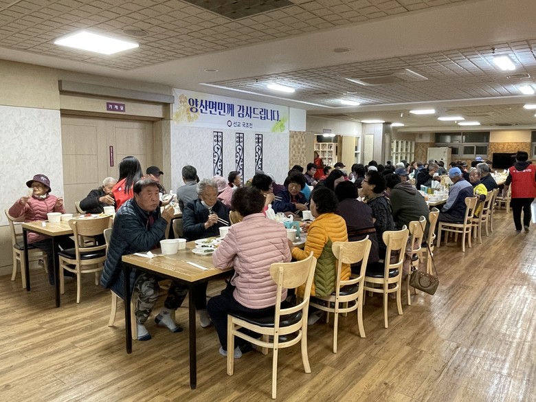 이날 잔치는 식전공연으로 영동노인복지관의 퓨전장구공연을 하며, 선교 기공공연과 양산면 주민의 숟가락난타 공연, 노래자랑, 선물 증정 등으로 참석한 양산면 주민과 어르신 모두 함께 즐겁고 행복한 시간을 가졌다.