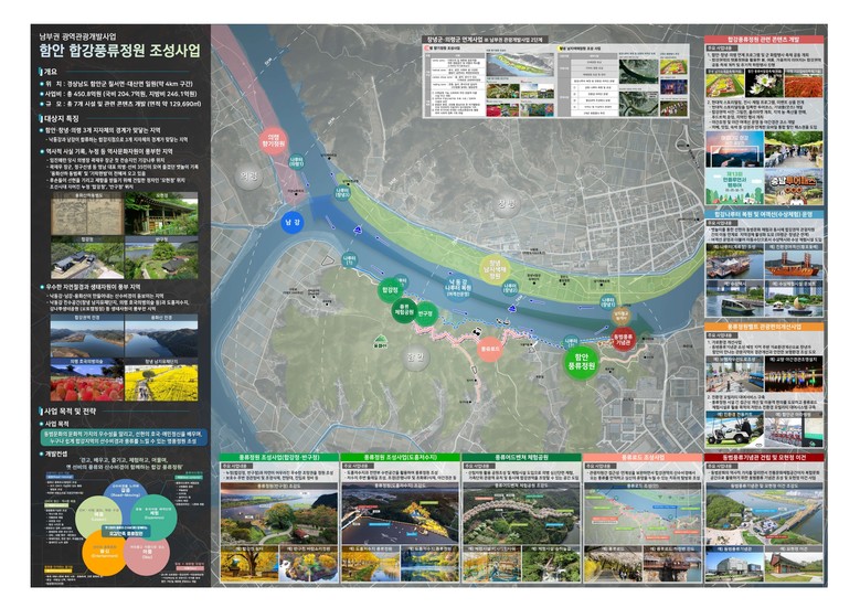 이에따라 내년부터 2028년까지 4년간 총 사업비 450억 8천만원(국비 204.7억, 지방비 246.1억)이 투입돼 낙동강과 남강이 합류하는 합강지점에 모현정 동범풍류기념관, 반구정 바람소리정원, 풍류어드벤쳐체험공간 등 약 4만평 규모의 관광테마정원이 조성된다.