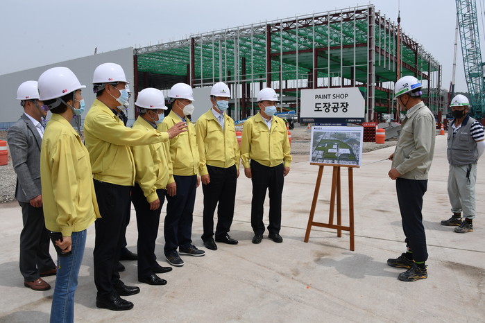이번 현장방문은 작년 12월에 착공한 이후 5개월이 경과한 시점에서 광주글로벌모터스(GGM) 공장 공사 진행 과정을 점검하기 위해 추진되었으며, 광주시 관계자들도 참석하여 ‘광주형일자리’사업인 광주글로벌모터스의 성공 방안을 모색하는 시간을 가졌다.