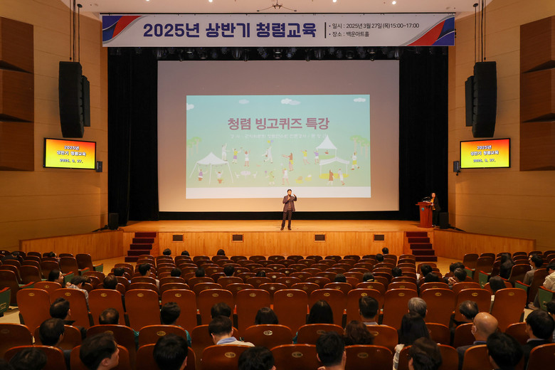 이번 청렴교육에서는 청렴 아카펠라 공연, 청렴 퀴즈 특강, 청렴 매직 마임쇼 등 문화적 소통을 통해 청렴 의식을 성장시키고, 공직윤리에 대한 올바른 인식과 공정한 업무수행의 의지를 다지는 시간을 가졌다.