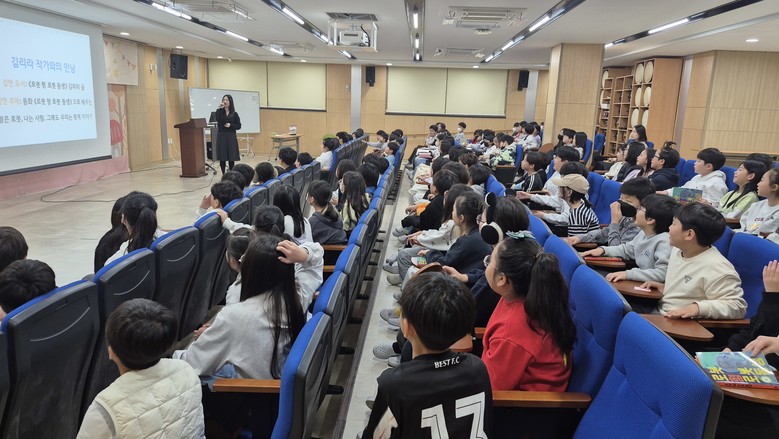 [남양주시 세계타임즈=송민수 기자] 다산가람초등학교(교장 이재광)는 2025년 11월 20일, 본교 4학년 학생들을 대상으로 온책 읽기 프로그램‘작가와의 만남’을 실시하였다. 이번 행사는 동화《로봇 형 로봇 동생》의 저자인 김리라 작가를 초청해 작품 속 이야기를 직접 듣고, 창작 과정과 메시지를 깊이 있게 이해하는 기회를 제공하기 위해 마련되었다.