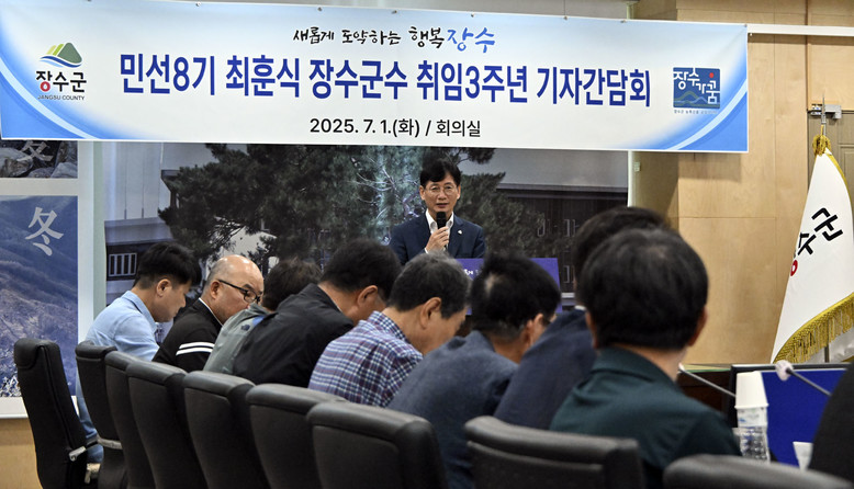 남은 임기 “누구나 살고 싶어하는 농생명·국제산악관광도시로 거듭날 것” 다짐 [세계타임즈=장수군 김서주 기자] 최훈식 장수군수가 1일 군청 회의실에서 민선8기 취임 3주년 기자간담회를 열고 민선8기 3년간의 주요 성과와 향후 군정 방향에 대해 설명하는 시간을 가졌다.