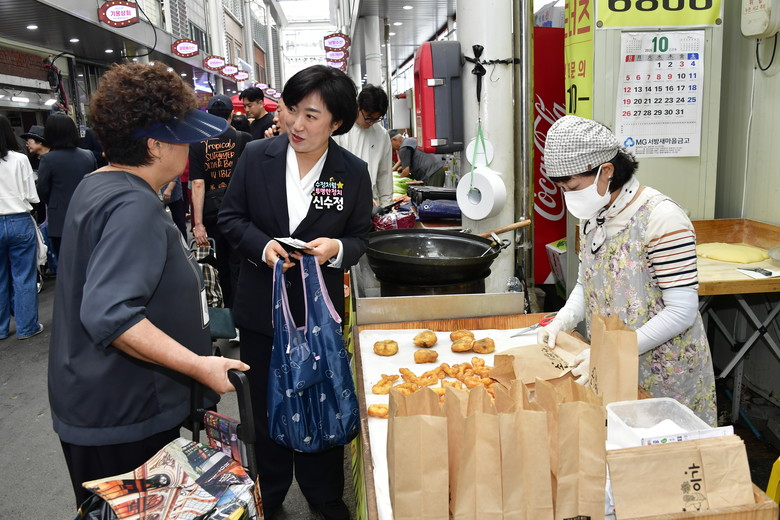 이날 신 의장은 온누리상품권과 민생회복 소비쿠폰을 활용해 장을 보며 박창순 상인회장을 비롯한 상인들과 만나 현장의 목소리를 청취하고, 추석 준비로 장을 보러 나온 시민들과 따뜻한 인사를 나누었다.