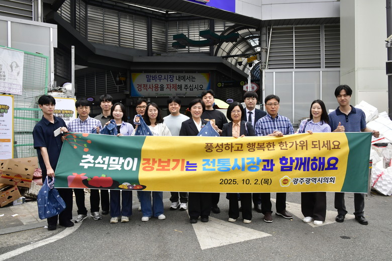 한편, 광주광역시의회는 추석을 앞두고 9월 하순부터 각 부서별로 전통시장 장보기 행사를 이어가며 온누리상품권·지역화폐 사용 분위기 확산과 전통시장 이용 촉진에 적극 앞장서고 있다.