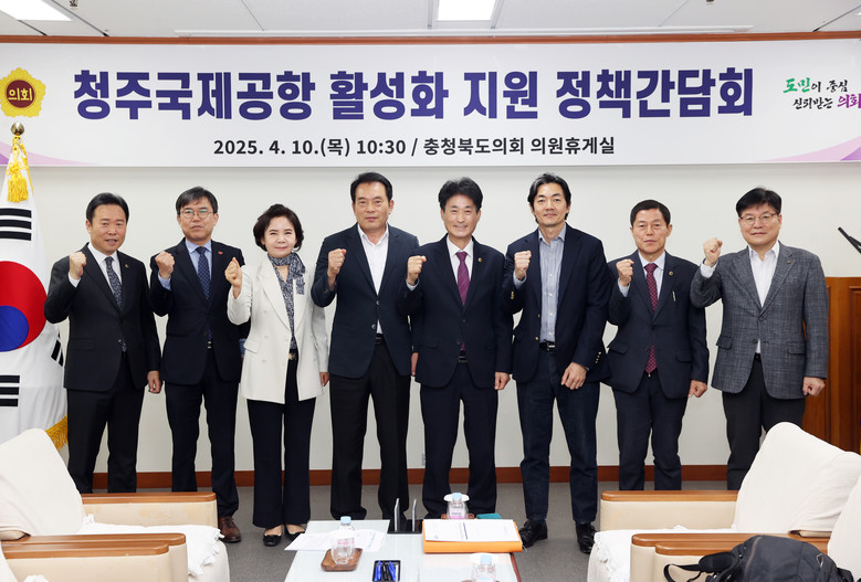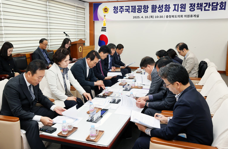 [충북 세계타임즈=이현진 기자] 충북도의회는 10일 도의회 의원휴게실에서 ‘청주공항 활성화 지원 정책간담회’를 갖고 공항 활성화 방안을 논의했다.