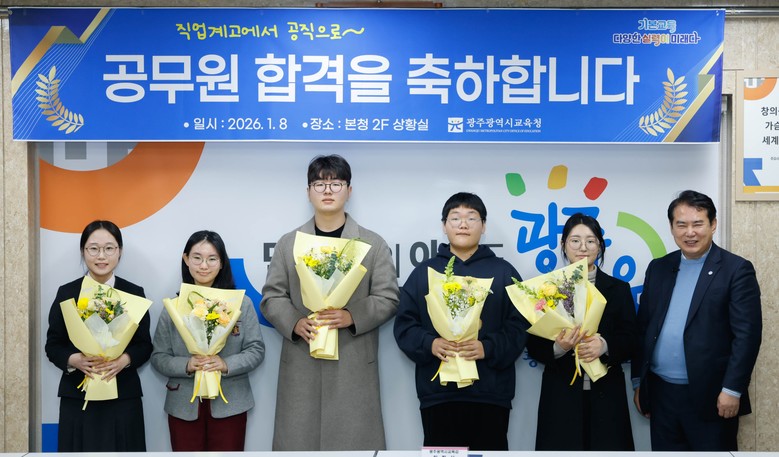 시교육청이 처음으로 도입한 ‘상업계고 우수인재 전형’을 통해 교육행정직으로 공직생활을 시작하게 된 광주여자상업고등학교 김보경 학생은 “학교에서 공무원 대비반과 맞춤형 지원 프로그램을 지원해줘 체계적으로 준비할 수 있었다”며 “직업계고 출신 1호 교육행정직 공무원으로서 책임감을 갖고 최선을 다하겠다”고 포부를 밝혔다.