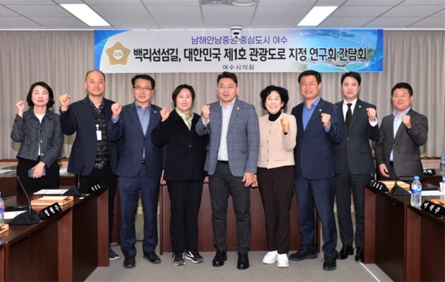 [여수시 세계타임즈=우덕현 기자] 여수시의회(의장 김영규)에 따르면 백리섬섬길 제1호 관광도로 지정 연구회(대표의원 최정필)가 지난 3월 19일 제1차 간담회를 개최했다.