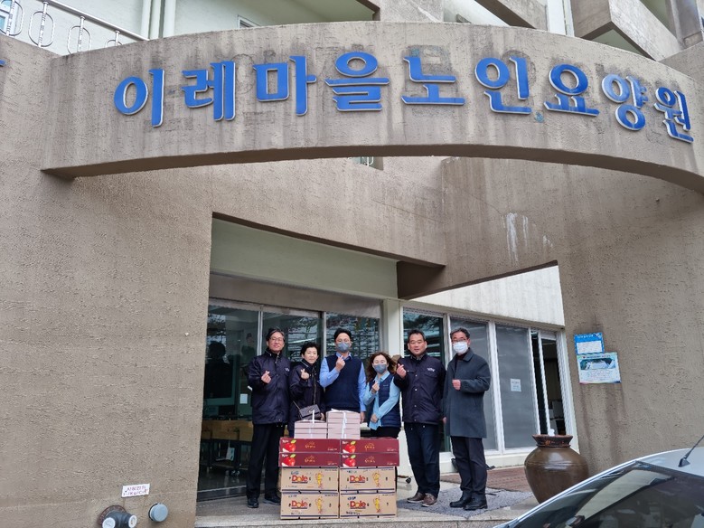 이날 위문은 코로나19 감염병 예방을 위해 실내 위문은 자제하고 시설 외부에서 위문품(과일 36박스, 떡 31박스)을 전달하는 방식으로 진행됐다.