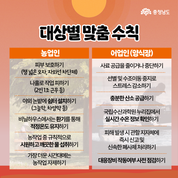 특히 건설현장과 농어촌, 산업단지 등 야외 작업자가 많은 지역에는 폭염 특보 발령 시 ‘무더위 휴식 시간제(Heat Break)’를 적극 홍보하고 있으며, 군 발주 공사현장에도 해당 내용을 반영해 현장 노동자의 안전 확보에 만전을 기하고 있다.
