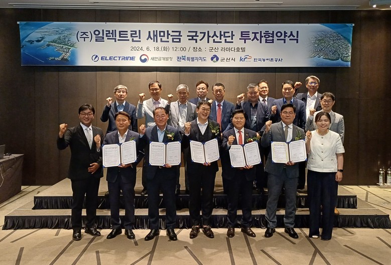 이날 협약식에는 김경안 새만금개발청장, 김종훈 전북자치도 경제부지사, 강임준 군산시장, 안재호 한국농어촌공사 단장, 원준희 ㈜일렉트린 대표 등이 참석했다.