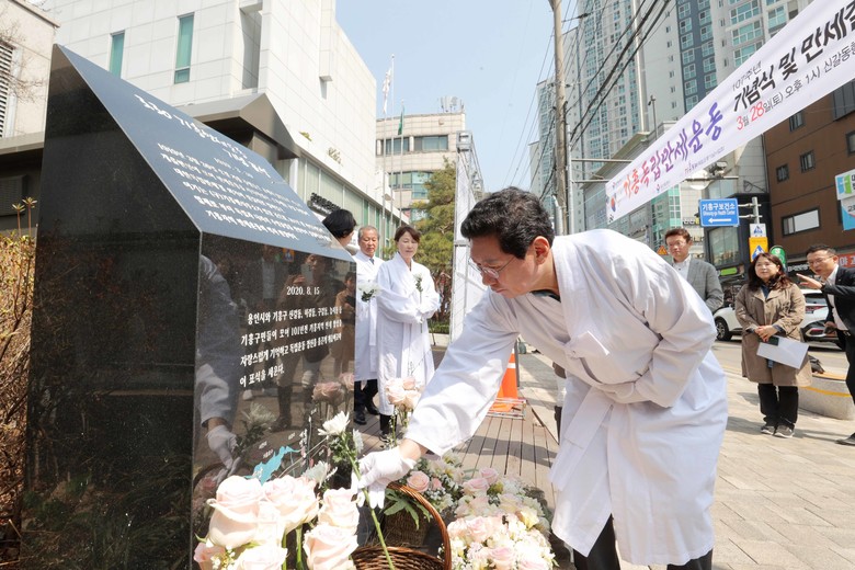 | ▲ 28일 기흥3.30 만세운동 기념표석에서 이상일 시장이 헌화하고 있다 |