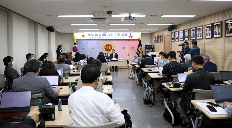 [세종 세계타임즈=이채봉 기자] 세종특별자치시의회(의장 상병헌)는 13일 1층 대회의실에서 의정 현안에 대한 기자 간담회를 개최했다.