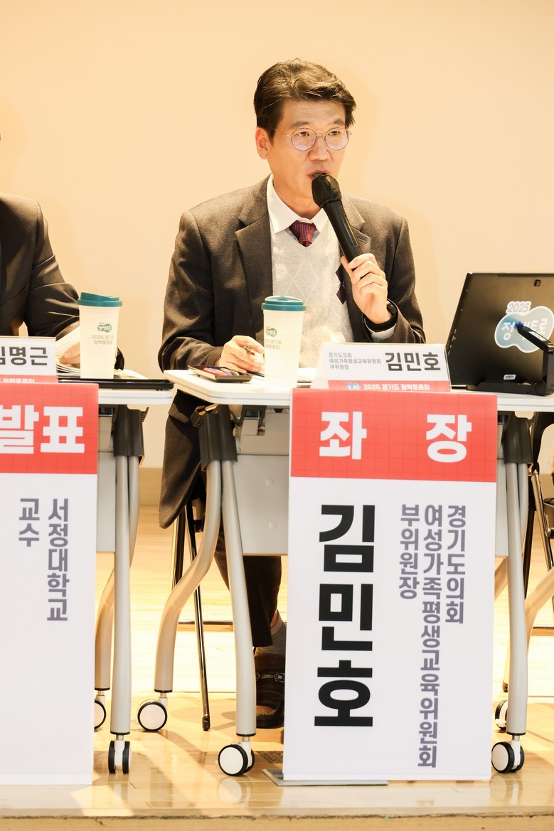 [경기도 세계타임즈=송민수 기자] 김민호 경기도의회 여성가족평생교육위원회 부위원장(국민의힘, 양주2)이 좌장을 맡은 「초고령화 사회를 대비한 요양보호 시스템 정비방안」을 위한 토론회가 10월 28일(화) 양주시 옥정호수도서관(예술극장)에서 개최됐다. 이번 토론회는 경기도와 경기도의회가 공동으로 주최하는 ‘2025 경기도 정책토론회’의 일환으로 개최되었다.