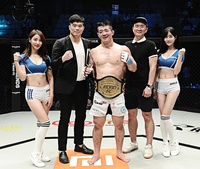 이번 타이틀 매치는 벨트의 진정한 주인을 가리는 자리였다. 전 챔피언 최영선수는 이번 대회를 앞두고 생애 첫 로드FC 타이틀을 얻었다. 4대 챔피언인 차정환이 부상으로 낙마하면서 잠정 챔피언이었던 최영이 챔피언 자리에 올랐다. 라인재는 차정환의 부상으로 생긴 공백에 대체 자원으로 뽑히면서 ‘도전자’ 자격을 얻게 됐는데, 졸지에 승리까지 거머쥐며 벨트의 주인공이 됐다.