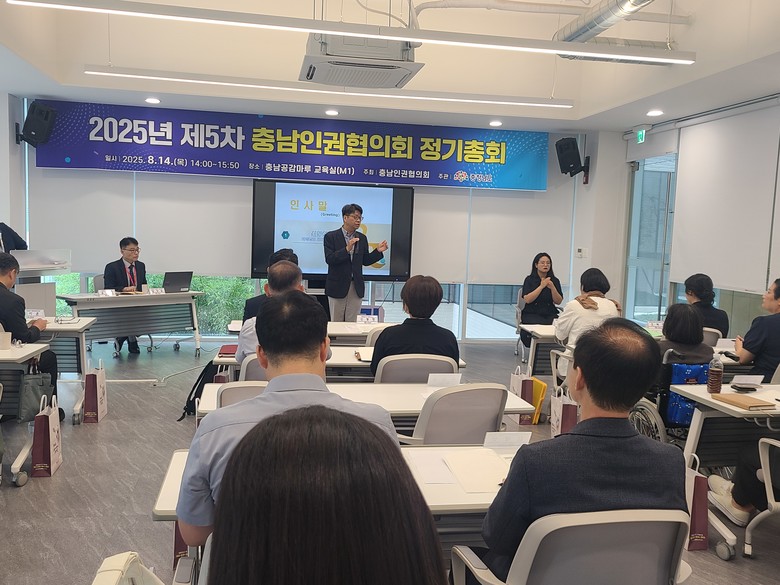 도 인권센터는 14일 충남공감마루 교육실(M1)에서 신동헌 도 자치안전실장과 송오영 국가인권위윈회 대전인권사무소장 등 40여 명이 참석한 가운데, ‘2025 제5차 충남인권협의 정기총회’를 개최했다고 밝혔다.