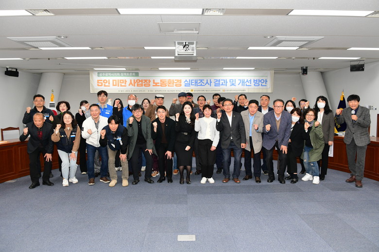[광주 세계타임즈=손권일 기자] 광주광역시의회 새로운노동특별위원회(위원장 채은지)는 29일 오후 광주시의회 예산결산특별위원회실에서 광주비정규직지원센터와 함께 광주시 5인미만 사업장 노동환경 개선을 위한 정책토론회를 개최했다.