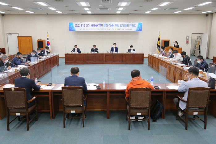 간담회에서는 부산시의 문화예술 및 관광마이스 분야에 대한 그간의 지원정책과 향후계획을 청취했다. 또, 마이스업계의 미팅테크놀로지 R&D에 시의 신속한 재정 투입, 전세버스업 총량제 완화 등 코로나19 위기 극복을 위한 다양한 방안이 논의되었다.