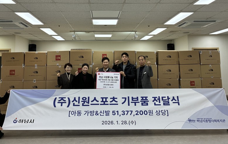 [하남시 세계타임즈=송민수 기자] 하남시는 지난 28일, 스포츠 유통회사인 ㈜신원스포츠(대표 황원식)가 신학기를 맞아 지역 내 취약계층 아동을 위한 키즈 가방과 신발 등 5,100만원 상당의 키즈 용품을 하남시종합사회복지관(관장 김혜성)에 기탁했다고 밝혔다.