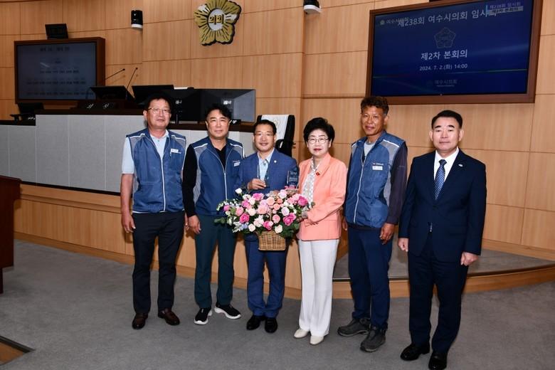 [여수시 세계타임즈=우덕현 기자] 여수시의회(의장 백인숙)는 7월 3일 의장실에서 백인숙, 문갑태 의원이 ‘2024년도 베스트 시의원’을 수상했다고 밝혔다.