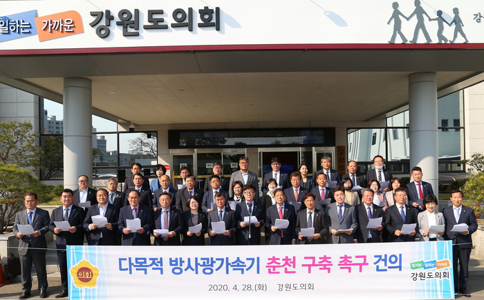 이에 우리 강원도의회는 다목적 방사광가속기 춘천 구축에 행‧재정적으로 적극 지원할 것을 약속하고, 국가균형발전과 평화 한반도 시대를 대비하여 수도권 접근 편의성 및 발전 가능성을 갖춘 춘천에 다목적 방사광가속기를 구축할 것을 강력히 건의 드립니다.