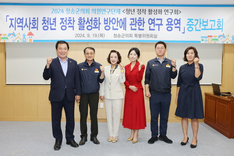 [청송군 세계타임즈=한윤석 기자] 청송군의회 의원연구단체 ‘청년 정착 활성화 연구회’는 19일 청송군의회 특별위원회실에서 「지역사회 청년 정착 활성화 방안에 관한 연구 용역」 중간보고회를 개최했다.