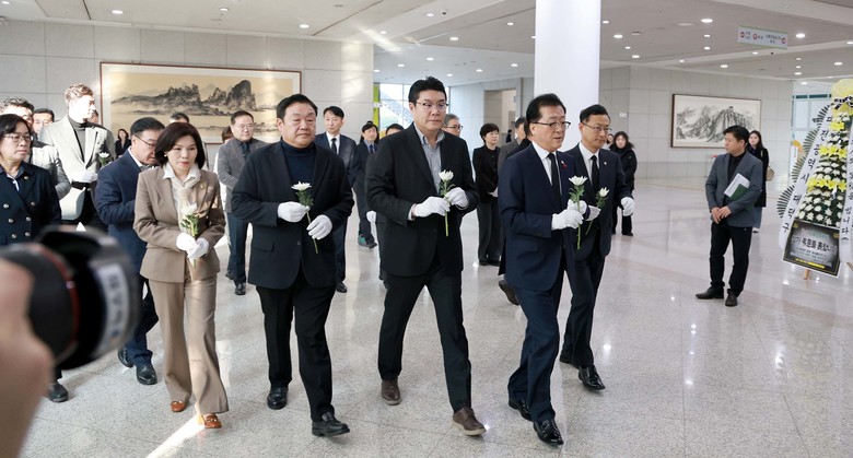 [대전 세계타임즈=이채봉 기자] 대전시의회 조원휘 의장은 30일 오후 대전시청 1층에 마련된 제주항공 여객기 사고 희생자 합동분향소를 찾아 희생자들의 명복을 빌며 깊은 애도의 마음을 표했다.
