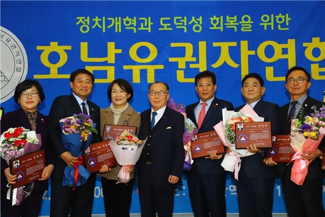 호남유권자연합은 지난 2000년 5월 ‘정치개혁 없이는 정치권의 부정부패를 막을 수 없고 도덕성 없이는 미래 한국정치의 희망을 품을 수 없다’는 취지로 창립되어 호남지역을 기반으로 꾸준히 활동해온 시민단체로서 6일 광주광역시 4.19혁명 기념관에서 열정적이고 헌신적인 의정활동으로 지역발전과 시민복리증진에 공헌한 국회의원과 자치단체장, 광역·기초의원을 선정하고 시상했다.