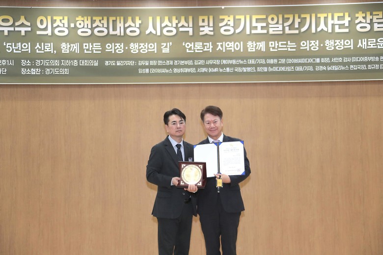 [이천시 세계타임즈=송민수 기자] 이천시의회 김재헌 의원이 10일 경기도의회 대회의실에서 열린 ‘2025년 우수의정행정대상’ 시상식에서 우수의정부문 ‘그랜드마스터상’을 수상했다. 경기도일간기자단이 주최한 이번 수상은, 조례 제정, 예산 심의, 현장 의정, 주민 소통 등 지방의회 의원에게 요구되는 핵심 역할 전반에서 탁월한 의정 역량을 보여준 기초의원에게 수여되는 상이다.