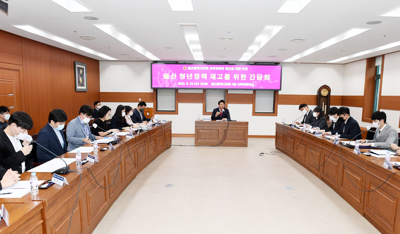 [울산 세계타임즈=이호근 기자] 울산광역시의회 교육위원회 권순용 의원과 안대룡 의원은 24일 오전 10시 울산대학교 총학생회 임원진과 울산과학대학교 총학생회 임원진을 비롯한 13명의 울산 청년들, 울산시 관계공무원 등과 함께 울산 청년정책 재고를 위한 간담회를 개최하고 현재 시행되고 있는 울산 청년정책에 대해 논의했다.